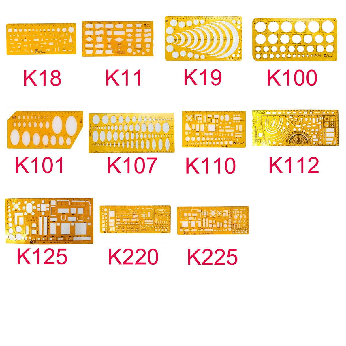 The durable plastic templates include varied circle sizes, ellipses, and specialized curves in one portable kit. Streamline your drafting workflow for technical drawings, creative projects, or educational use.