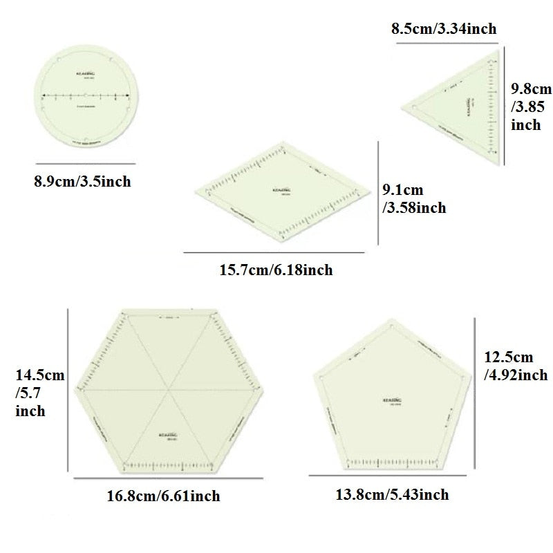 Circular, Triangular, Diamond, Pentagon, and Hexagon Shapes: Embrace creativity with our range of unique shapes, aiding in pattern-making, patchwork, and various sewing projects.