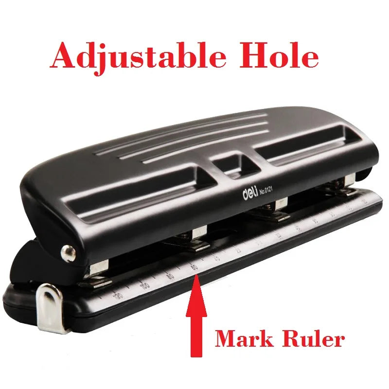 4-Hole Adjustable Hole Punch with Mark Ruler | For A2/A3/A4 Paper | 10-Sheet Capacity | 6mm Holes