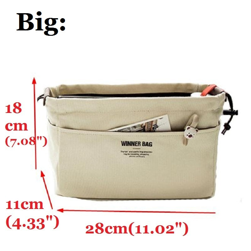 Canvas Purse Organizer Bag Inner Insert with Compartment Makeup Handbag