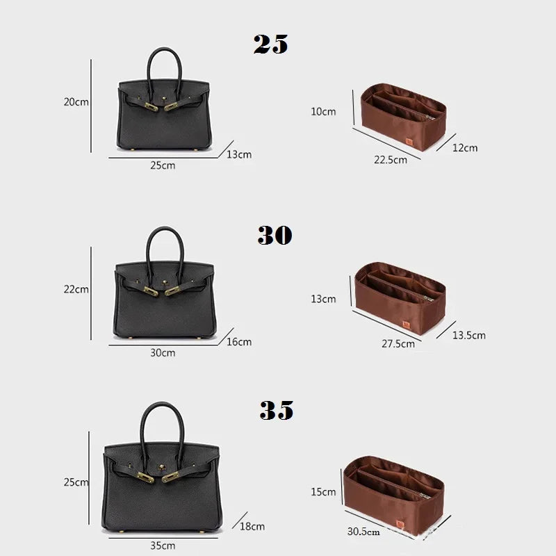 Clocore Fashion Satin Insert Bag for Birkin Handbag Size 25 30 35 Purse Organizer Insert & Tote Shaper Perfect Accessories for Your Bag
