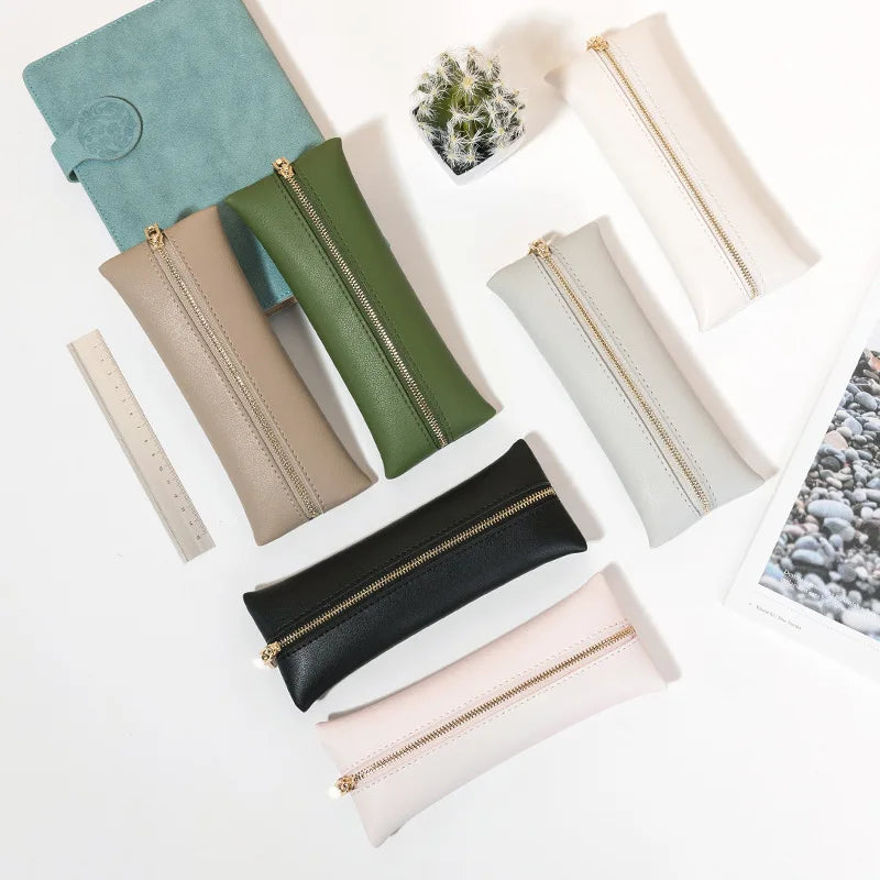 Crafted from high-quality PU leather, this pencil case exudes sophistication and durability. The smooth metal zipper ensures easy and seamless opening and closing, providing quick access to your belongings. The minimalist design adds a touch of elegance, making it a fashionable accessory for any setting.